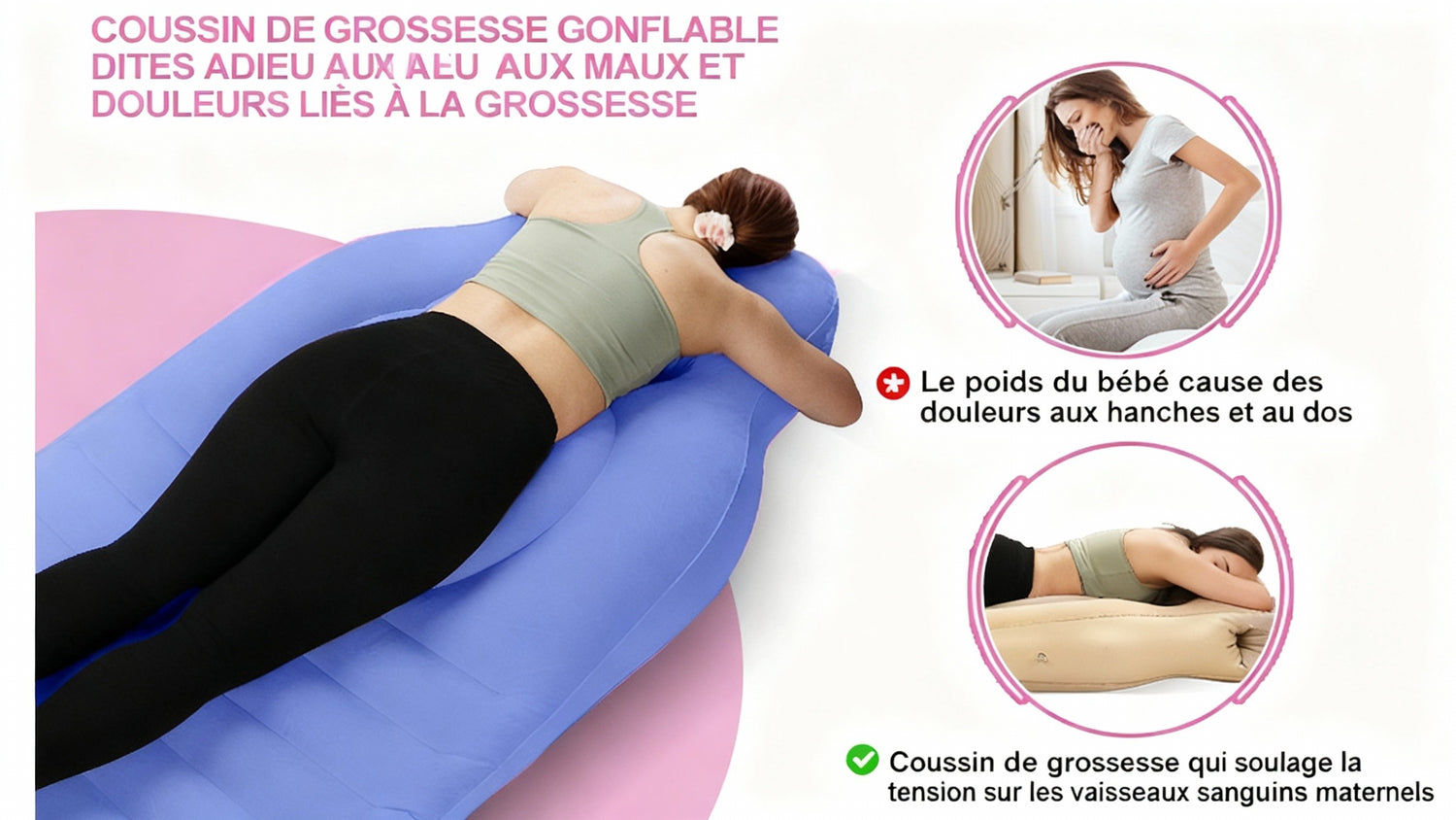 Dites adieu aux douleurs de dos et de hanches ! Ce coussin ergonomique soulage la pression du ventre et des vaisseaux sanguins, offrant un confort optimal aux futures mamans.